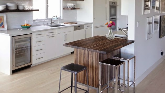 W małych kuchniach często montuje się przedłużenie blatu kuchennego.który będzie zajmował naprawdę niewiele miejsce,w połączeniu z hoockerami będzie wyglądał estetycznie, nowocześnie, jest blisko powierzchni do gotowania, więc nie trzeba biegać z gorącymi daniami po kuchni.