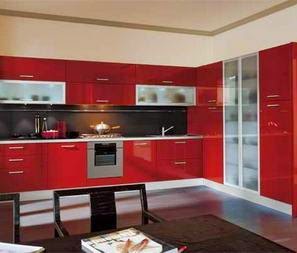 W tej kuchni celowo wszystkie fronty kuchenne zostały wykonane ze szkła lacobel, ponieważ pod jednym z frontów jest zainstalowany telewizor, którego nie widać kiedy jest wyłączony. Oczywiście możliwości jest jeszcze wiele, wszystko zależy od was i pomysłowości firmy, wykonującej meble na wymiar.