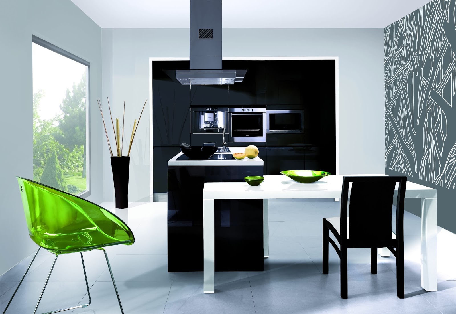 Istnieje możliwość zabudowy wszystkich sprzętów kuchennych łącznie z piekarnikiem by uzyskać idealnie gładką szklaną ozdobną ścianę. W minimalistycznych meblach do kuchni powinniśmy zrezygnować z tradycyjnych uchwytów i zastąpić je systemem klik-klask, który umożliwia otworzenie szafki za pomocą dotyku.