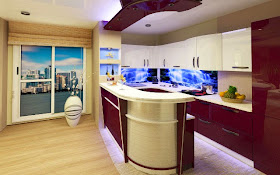 i najlepiej połyskujący. Doskonale sprawdzą się w tym przypadku białe, żółte, lub modne zielone ( limonka) lakierowane szafki, górna część zabudowy będzie rozświetlać pomieszczenie, jeśli zamontujesz przeszklone, podświetlane fronty.