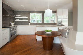 Organizując kącik jadalniany zastanówmy się jaka ilość miejsc jest nam potrzebna przy stole, co będzie praktyczniejsze krzesła,stołki, a może hoockery. Jeśli kuchnia jest zbyt mała by po wstawieniu nawet niewielkiego stolika móc swobodnie się po niej poruszać, możemy go zastąpić przedłużeniem parapetu, blatu, lub wyspy kuchennej.