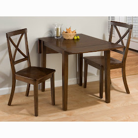 Kolejnym rozwiązaniem jest komplet jadalniany zajmujący bardzo mało miejsca, z krzesłami które prawie w stu procentach składają się pod blat, jest to bardzo praktyczne i efektowne rozwiązanie, takie zestawy są dostępne w różnych wariantach kolorystycznych, także jako drewniany stół i czarne stylowe fotele.