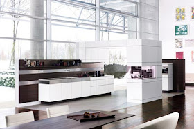 Istnieje możliwość zabudowy wszystkich sprzętów kuchennych łącznie z piekarnikiem by uzyskać idealnie gładką szklaną ozdobną ścianę. W minimalistycznych meblach do kuchni powinniśmy zrezygnować z tradycyjnych uchwytów i zastąpić je systemem klik-klask, który umożliwia otworzenie szafki za pomocą dotyku.