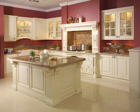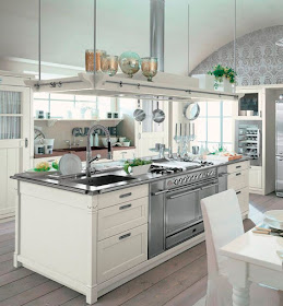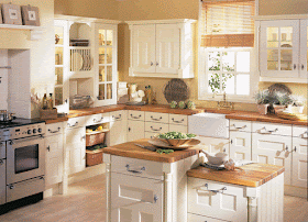 Wyspa kuchenna jest tym elementem zabudowy, który Anglicy lubią najbardziej, najczęściej przypomina stare, misternie wykonane kolonialne komody, fronty szafek są ozdobione licznymi frezami i żłobieniami, częstym elementem angielskiej wyspy kuchennej są półki, na których stoją liczne ozdoby i przedmioty użytkowe.
